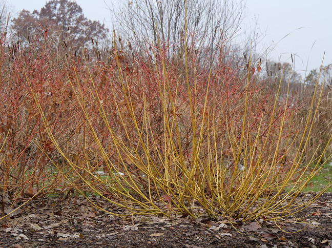 If you're a fan of Gardener's World, you may remember Carol Klein wandering through a winter garden that showcased red and yellow dogwoods to perfection. I already have red and lime-green varieties, but I have yet to add a Dogwood with yellow stems. Dogwoods are one of the more shade-tolerant shrubs. They also adapt to a wide range of soil conditions. What also interests me about Artic Fire® 'Yellow' is spring flowers and the white berries that follow.