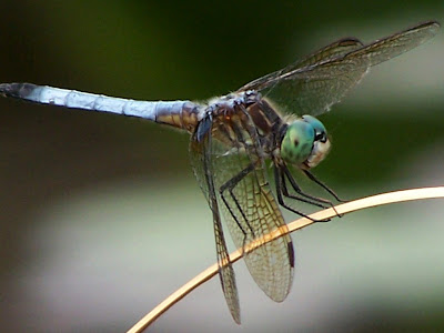 The pond attracts lots of wildlife including hawks and eagles. Here a dragonfly keeps watch over the pond on the curve of a slender reed.