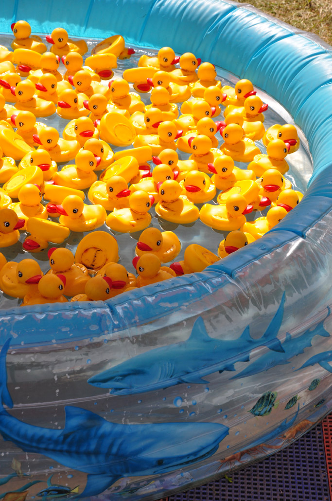 Watch out for sharks! Yellow ducks in the "Go Fish" Pond for kids at the Brampton Fall Fair.