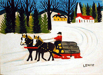 ReplyDeleteYou say "Maud did not let nature limit her representations of the world around her. In this painting, there are trees with brightly colored fall leaves in a winter landscape" Actually, I don't know the circumstances of that painting but it is not necessarily off the mark. I have certainly seen snowstorms hit when the autumn leaves were not off the trees, with snow deep enough for the use of a sleigh. It isn't common, but it isn't exactly rare. It is quite possible that she painted this scene precisely to capture such an event.