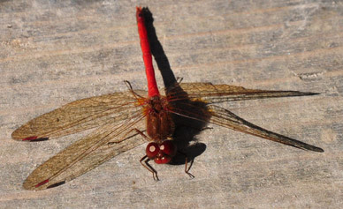 A dragonfly sunning himself. Aren't his red eyes wild looking?