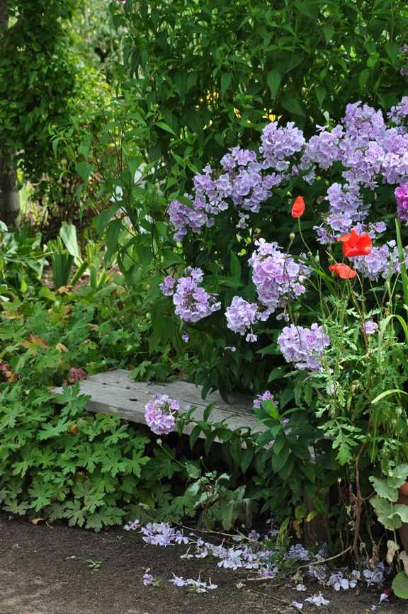 One of the intriguing things about the layout of the property is that the vegetable garden is not a separate entity, but is incorporated right into the main flower garden. In this shot, you can see vegetables growing just beyond the phlox.