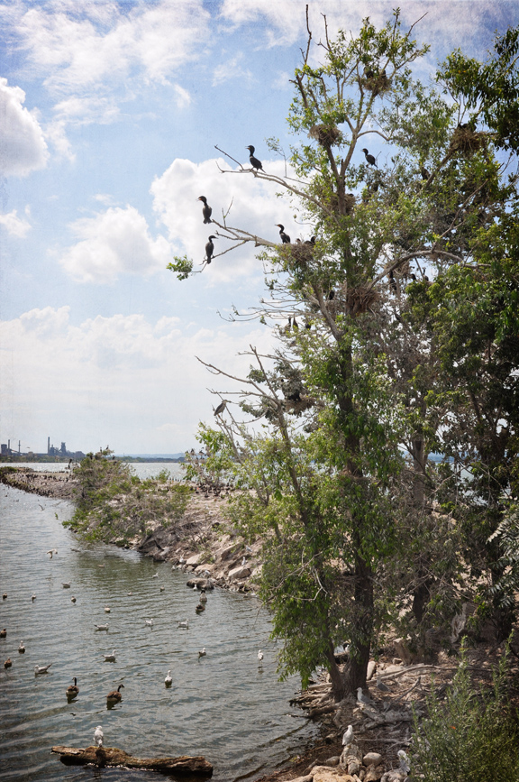 I don't know why I had never noticed them before; there were after all, hundreds, or even a thousand of them. Perhaps it was because, for once, I was in the passenger seat of the car. Without having anything on the road to demand my attention, I was at leisure to look out across the Hamilton harbour. As I looked out over the water, the sight of so many birds in the air, on the water and nesting in trees was arresting.