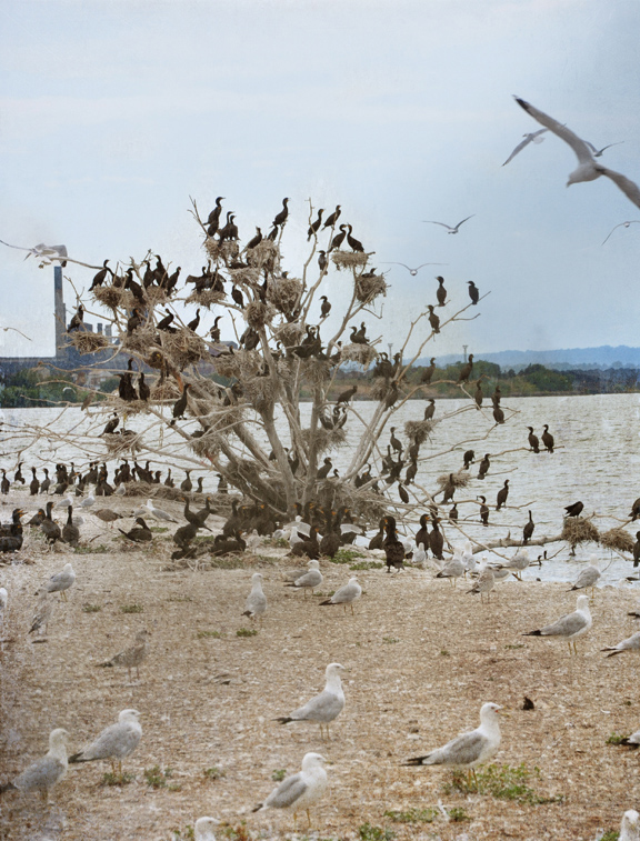 Even more bizarre was the industrial backdrop for the large flocks of birds.