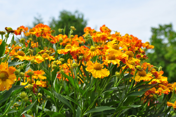 Did you notice the tall perennial just behind the False Mallow? It is Helenium or Sneezeweed. I have found that this North American native is a great upright plant in my own late summer garden. They prefer rich moist earth and sun, but it will tolerate light shade.