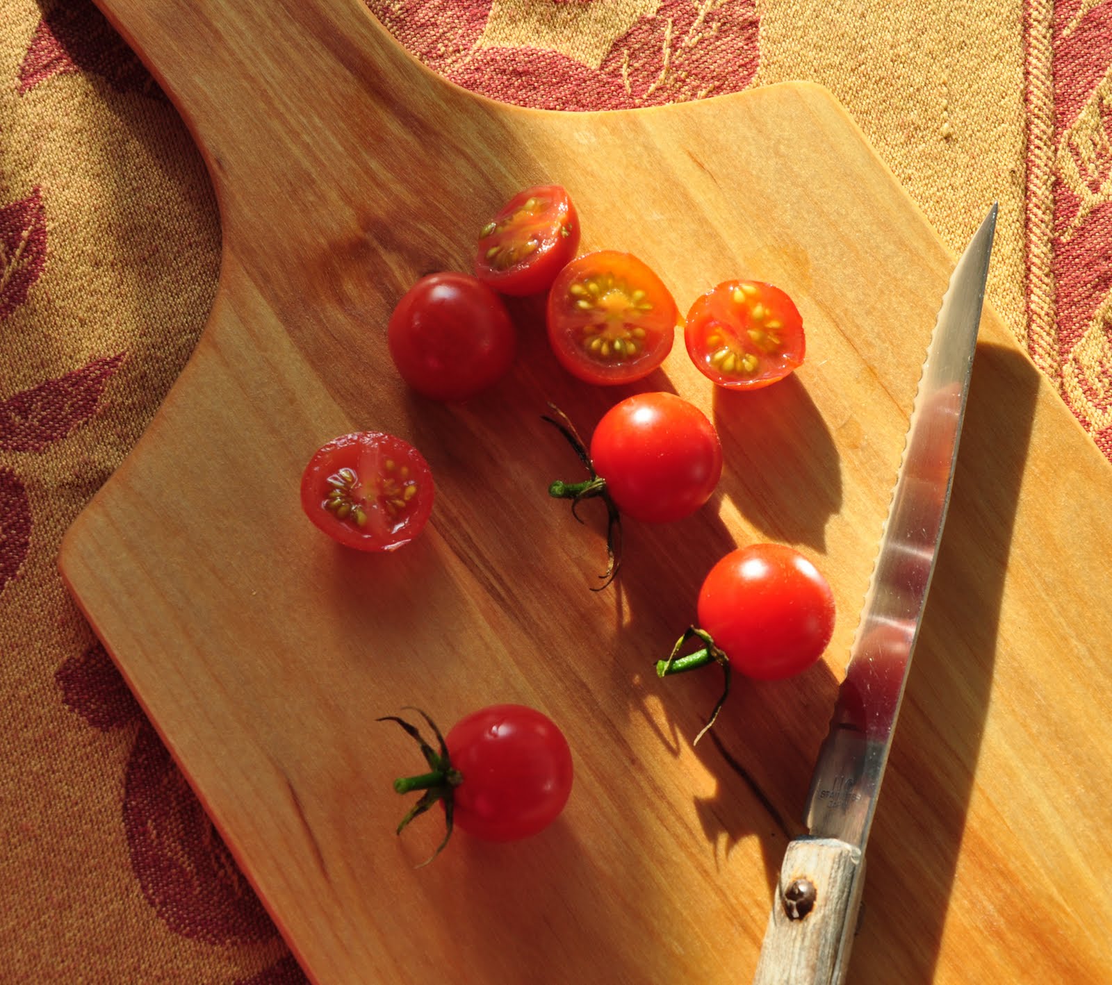 ReplyDeleteI'm noticing the light these days too. Everything seems so warm and infused in this light. Congratulations on the wonderful tomatoes. I'm so jealous looking at your salad. I just spent several hours cutting up my diseased vines tonight. All those wonderful fruits in the trash. But there are always good things aren't there? You had great tomatoes and I've got four kinds of lettuce coming out my ears. Every year at least one thing does well and we eat like kings.