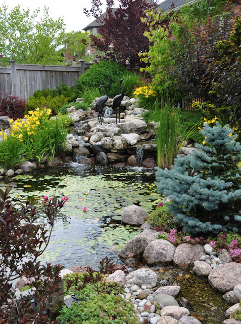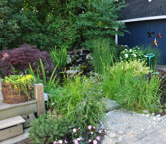 If your garden is really small, keep it simple. This garden has one main feature: the pond. Located right off the back deck, it is in the perfect spot for the homeowners to relax in the evening.