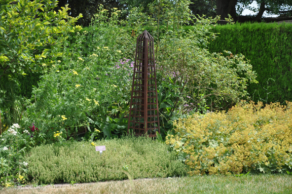 Now, if the gardener had continued with the bunnies in the flowerbed opposite, the rabbits might easily have gone from a cute detail to over-the-top. Instead, she wisely put a single focal point in the planting bed across from the one with all the bunny rabbits.