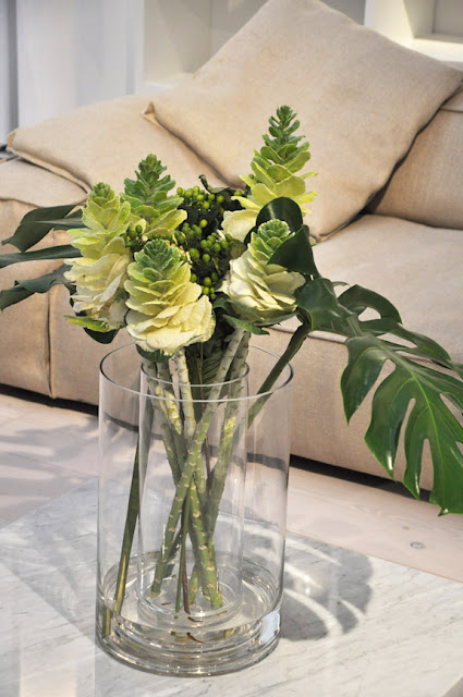 (Did you notice the vase within a vase that holds the flowers and foliage in place? Clever!)