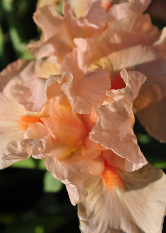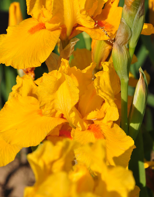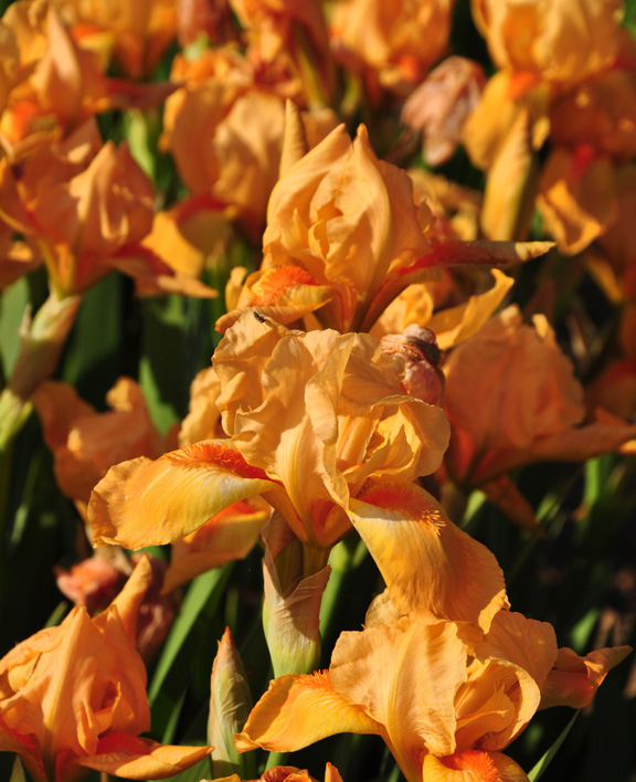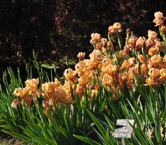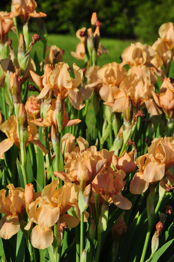 I have another reason for showing this shot here. While I find the limited mix of peony colors above pleasing, I find this unedited mix of iris colors unattractive. There are just too many colors here and not all of them work together.