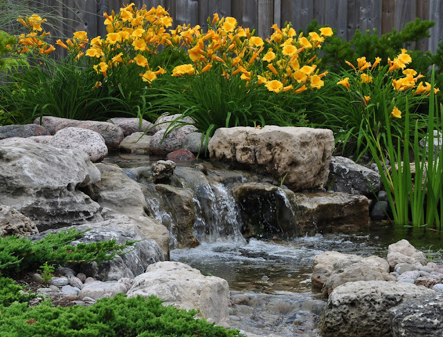 ReplyDeleteThese are beautiful features that is for sure and they are seriously big. I'm sure the owners derive an awful lot of pleasure from their yards. I haven't got any water features at all. I find them lovely but am just not a water gardener. I always wonder too about wasting resources. One of things I love about gardening is complementing nature, using natives and creating places for insects and animals. Water is certainly good for frogs and birds but to bring in water to fill ponds, constantly running pumps to keep it aerated, cleaning. It seems like a waste of water and electricity, I don't know, maybe I'm silly but there's something unnatural about it.