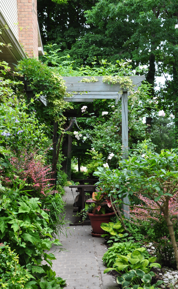 ReplyDeleteSchool teacher Karen has done an great job of putting terrific plant combinations within an excellent design. The lines of her flower beds curve and move, all the while taking the eye away from the typical vertical elements of a modern suburban house. Her planters are very original and everything looks lush and healthy. I had to smile though - I wonder if her climbing hydrangea on the garage wall tends to creep over her shutters, garage windows and into her eaves? Ours does and needs a sever pruning every few years. Wouldn't give it up though - I love it.