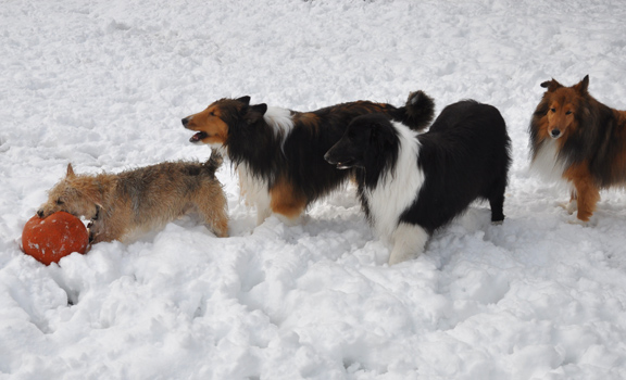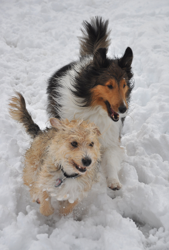 Love it. Nothing quite like all the pups playing in the snow together. We always make sure to blow/shovel the snow in the yard into at least one pile so they can play puppy games on the snow hill. Good fun.