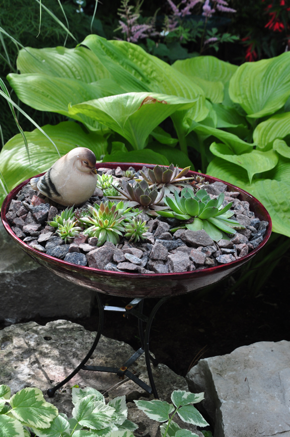 For today, I will leave you with a small container planting of succulents. In the next post, I will pick up where we left off, and explore the shadier part of the back garden.