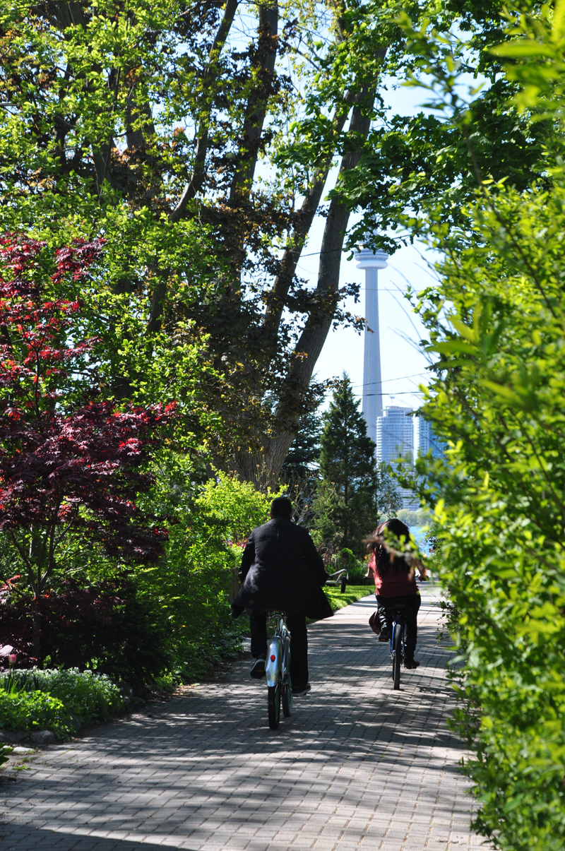 Other than service vehicles, there are no cars on the Toronto islands. Bikes are as motorized as it gets.