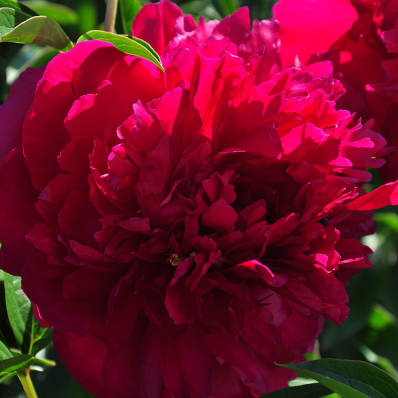 Longfellow: Non-fading crimson red with golden stamens. Slightly fragrant. Blooms mid-season.