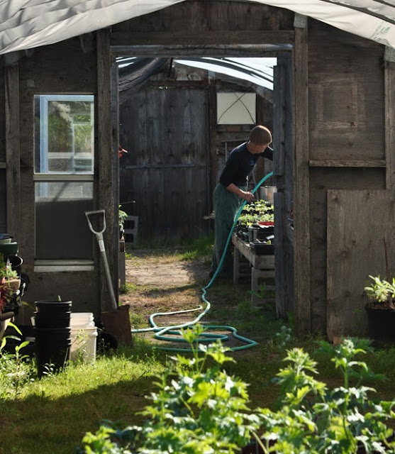 After she finished watering young seedlings, she still had to cut peonies to fill an order from a florist on the evening we paid the nursery a visit. That's a long work day!