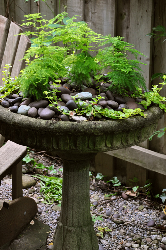 These spaces are beyond inspiring Jennifer. And I so like the rock garden in the bird bath!!! Brilliant!! I would love to just sit here and have a glass of wine!