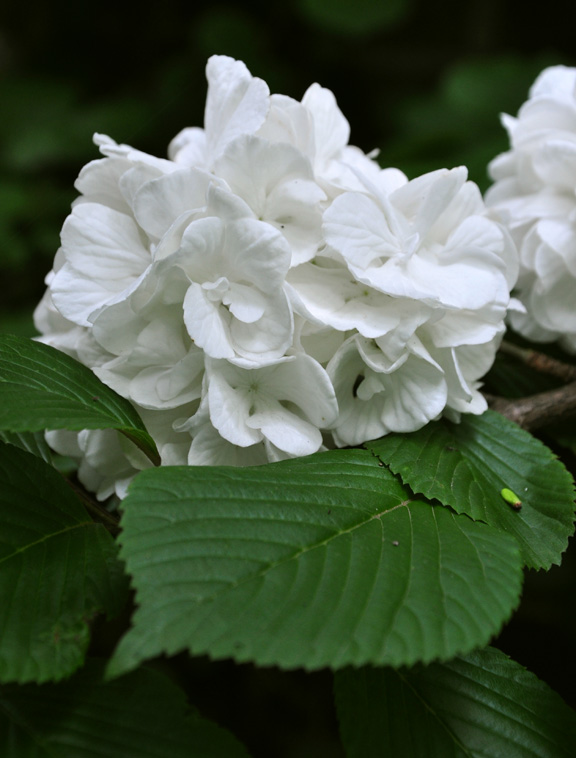 Before we go on, I want to stop to admire the pretty white Snowball Viburnum, Viburnum macrocephalum which you can see peaking into the shot on the right.