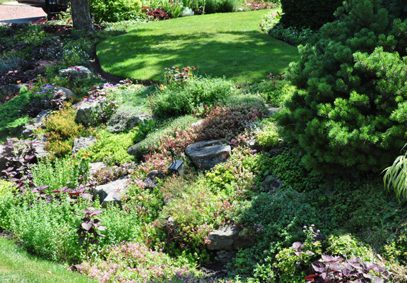 Most of the other homeowners on the same street had just ignored it and left if as a grassy incline. Instead Patricia has used it as an excuse to create a very nice rock garden. In doing so, she has turned a less than ideal feature into a very nice asset.