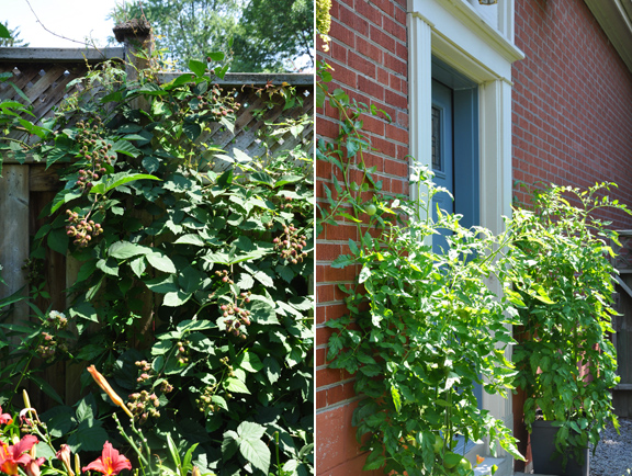 On the right there is a picture of a blackberry which she has espaliered along the fence.