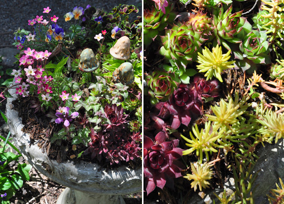 I also found that the cold frame is a great place to park tender plants for the winter. Thanks to the shelter it provides, the top of this birdbath planter came through the ravages of a Canadian winter beautifully.