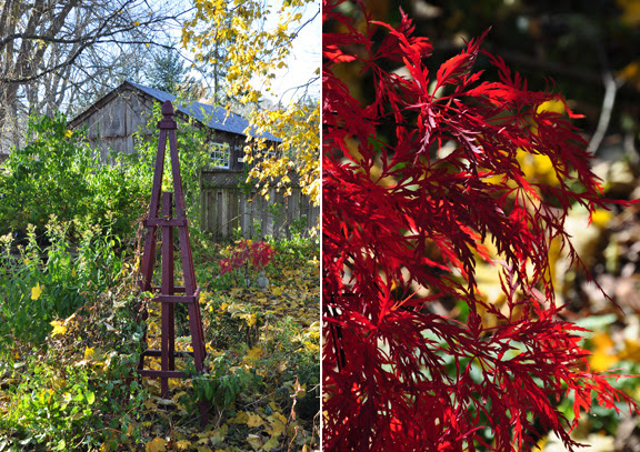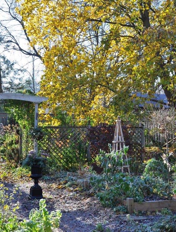 The big Maple at the back of the garden always seems to be fall's swan song. It is the last tree in the yard to turn color and finishes the season with a crescendo of most brilliant yellow.