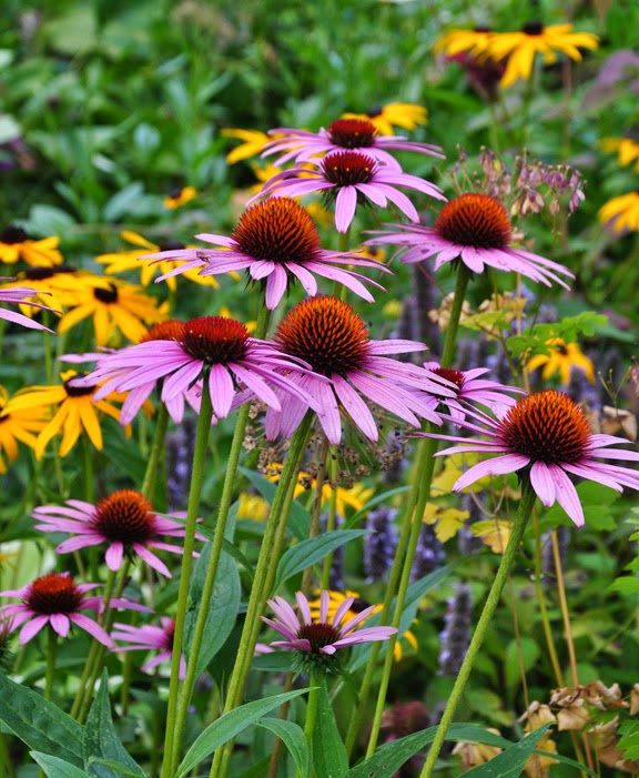 Phlox paniculata 'Nicky', yellow Rudbeckia, Caryopteris divaricata 'Snow Fairy'