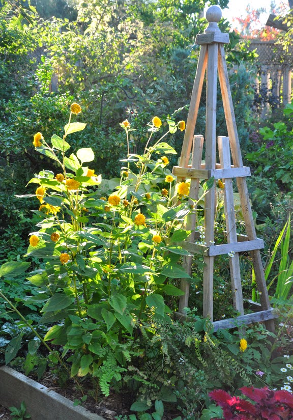 Dwarf Perennial Sunflower, Helianthus 'Happy Days': I think it is about time I cut this poor plant some slack. Though I like to experiment with new plants, I am always a bit apprehensive when a perennial is unfamiliar. It's a case of once bitten twice shy: I have enough problems already with aggressive plants like lily of the valley and goutweed.