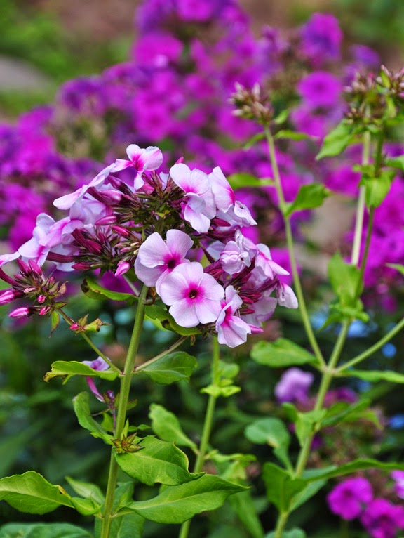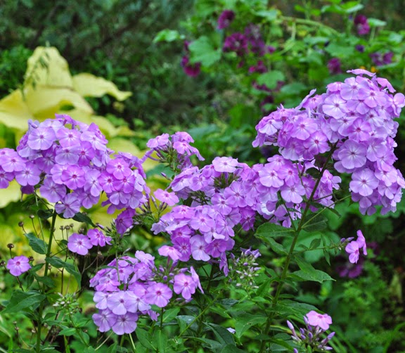 Phlox paniculata 'David's Lavender': I think this has become one of my favourite varieties of phlox. The flowers are a lovely lavender-mauve. Full sun or light shade (mine is in light shade). Average to moist growing conditions. Height: 90-120 cm (36-48 inches), Spread: 60-90 cm (24-36 inches). USDA Zones: 4-9.