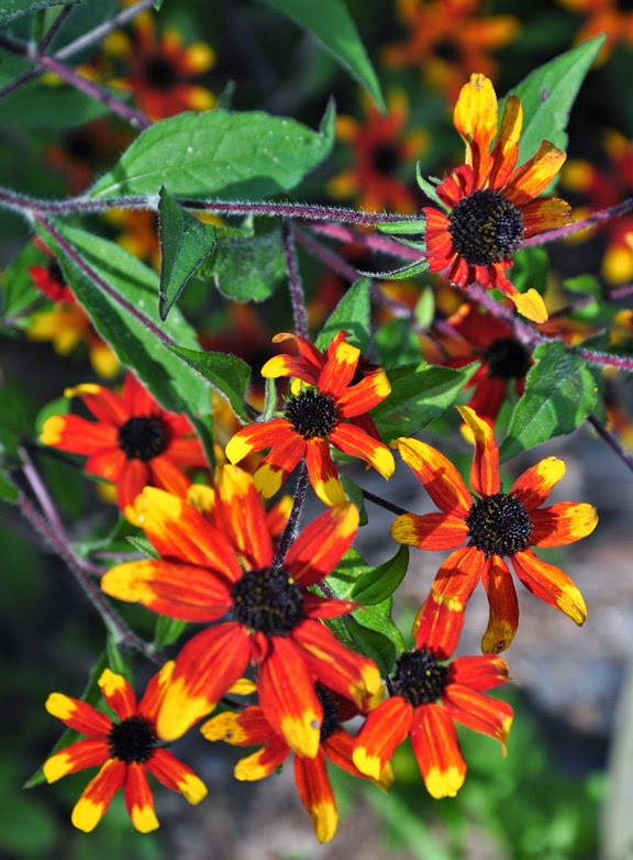 Rudbeckia triloba 'Prairie Glow' : This plant is relatively new to my garden. When it came up this spring, I did not recognize the stems or leaves and almost pulled it out as a weed! But the neat plum colored stems made me hesitate and I am glad I held off.