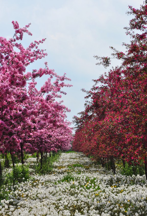 One weekend last May were driving from here to there when, quite by accident, we came across a field filled dandelions and long rows of ornamental cherry, plum and crabapple trees. None of them were identified. I hope you will forgive me for leaving them as such and appreciate them just as they are.