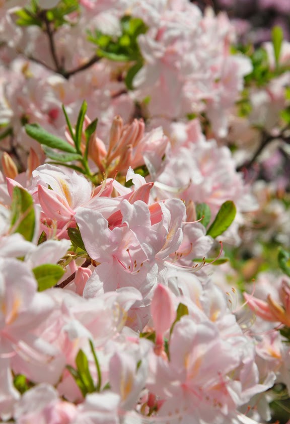 Rhododendrons and gorgeous azaleas, like this pale pink one, were one of the many