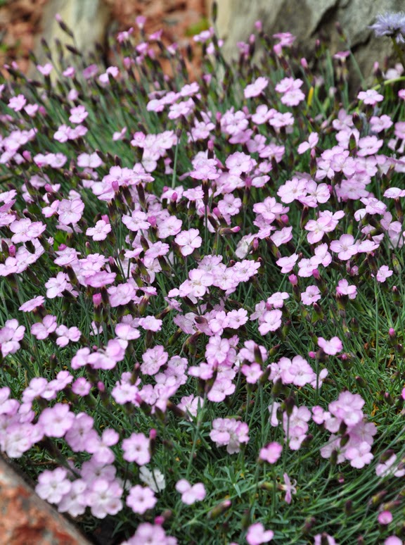 Generally, we turn to foliage, bark and other hard surfaces to add a textural element to a garden's design. In a rock garden, however, a low dense blanket of blooms can be used to create an exquisitely textured surface.