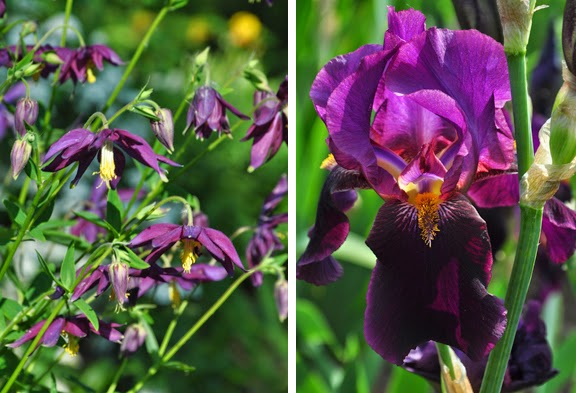 Columbine: The Columbine, Aquilegia Ancolie (shown above) has eggplant colored flowers. Cultivar Aquilegia 'Black Barlow' has is a double, plum-purple flowers.