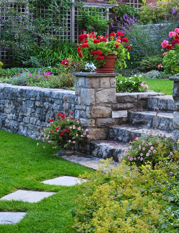 Another staircase leads down from the walled garden to the yard at the back of the house.