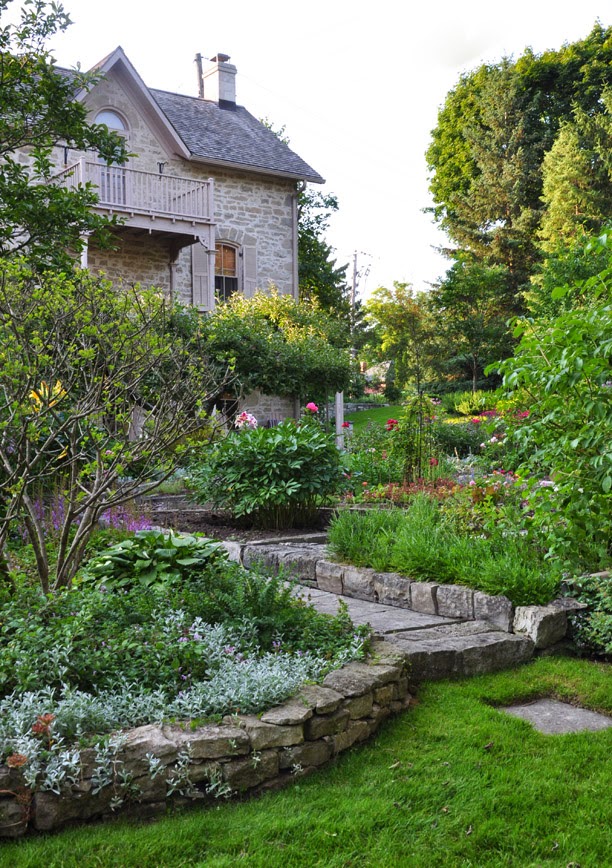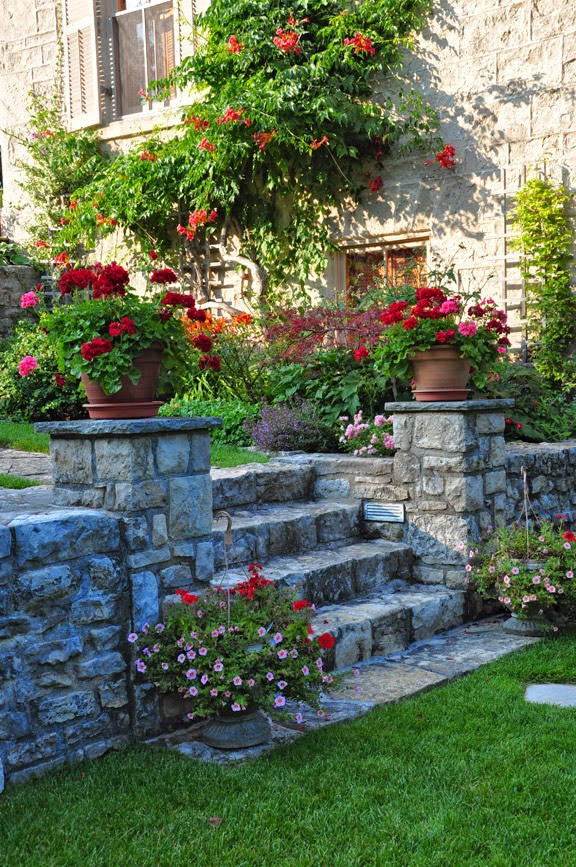 As you will see in the next few shots, the property rolls gently down to the river gorge. Locally quarried stone was used to terrace the slope and to make a stairway that leads down from the house at street level.
