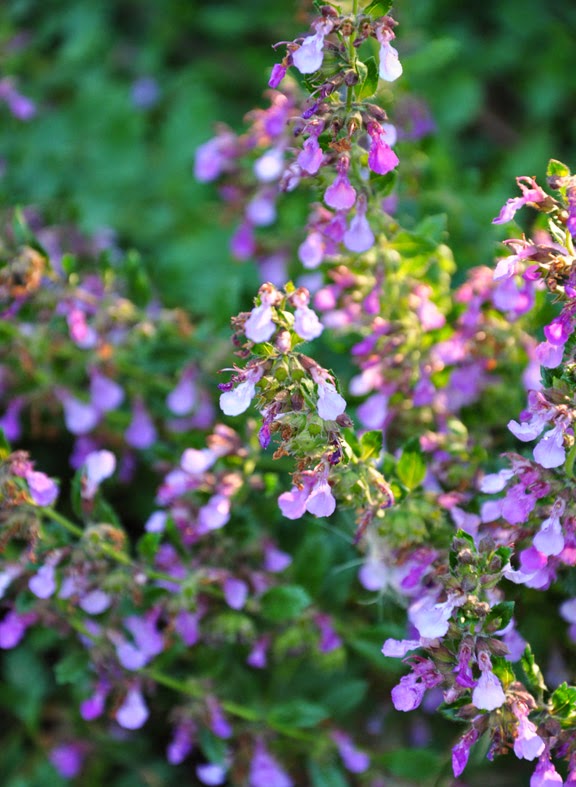 Tomatoes in the foreground with Oregano, Lamb's Ears and magenta colored Phlox in behind.