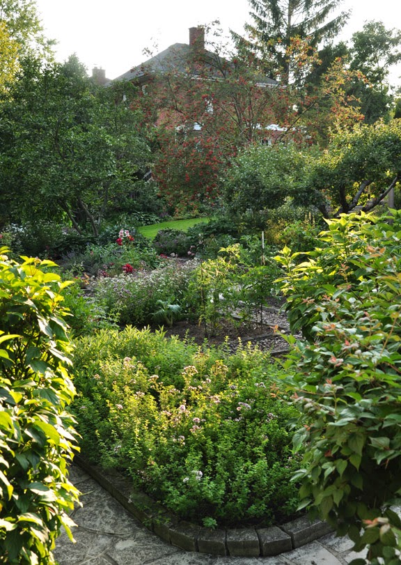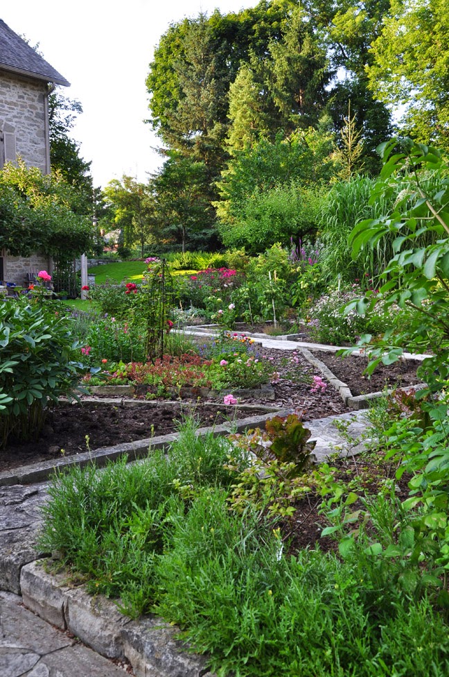 On the right there were a series of rectangular beds for vegetables and herbs. The more I see examples of this mixed planting style, the more I admire it when fruit, flowers, vegetables and herbs are all mixed in together.