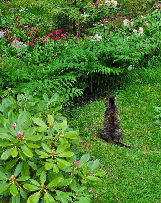 What an absolutely stunning garden. Your pictures show it to perfection and I just love the one with the cat sitting looking at the borders ... wonder what she/he has seen ...amazing.