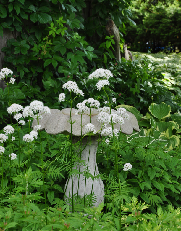 One of the reason's you might want to grow Lady's Mantle, Alchemilla Mollis is its round, soft textured foliage. Raindrops cling to its leaves and shine like diamonds. The plant itself has a nice low mounded shape. Sprays of chartreuse flowers appear in early summer and make a nice filler for floral arrangements (This plant is a good self-seeder, so remove the spent flowers if you don't like unwanted seedlings ). You will sometimes see Lady's Mantle on lists of plants suggested for shade, but I find it much prefers part shade rather than full shade.