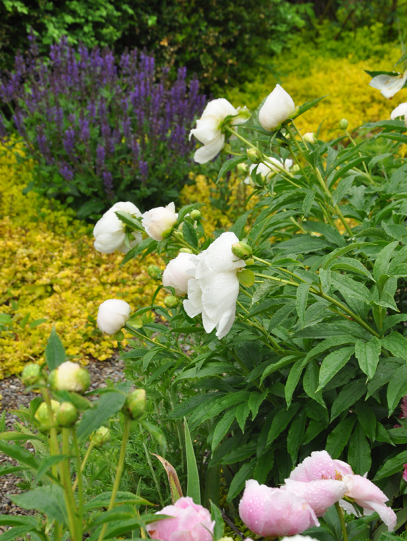 Peonies and irises in the centre flowerbed.