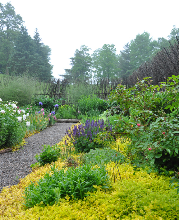 David Warbuton's inspiration for the garden's design came from an old picture of an English garden with a very primitive woven willow wattle.