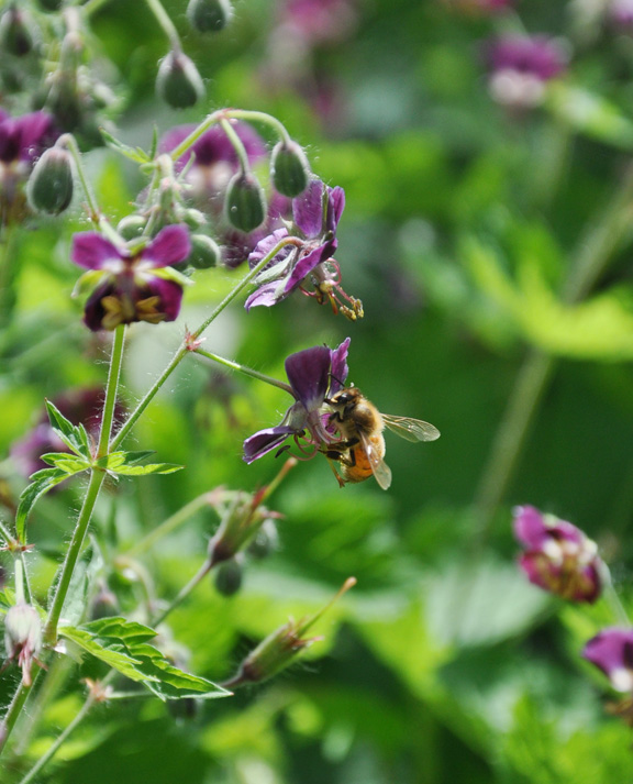 By mid-summer the forget-me nots and geraniums have self-seeded and the weeds have moved in.