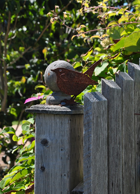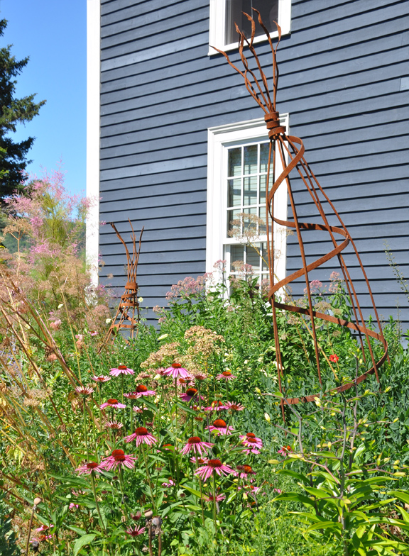 The rusty metal obelisks are made by local artist Alexa Jaffurs. I love the whimsy of their slightly wonky shapes.