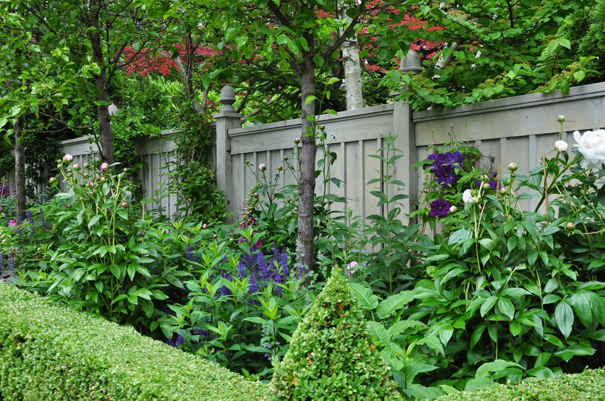This first example is hands-down one of the prettiest traditional fences I have ever seen. The arbor at the entrance is gorgeous too.