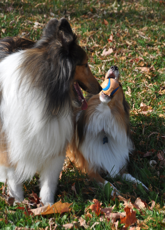 Gillenia (a wonderful native) and Piper on a ball hunt.