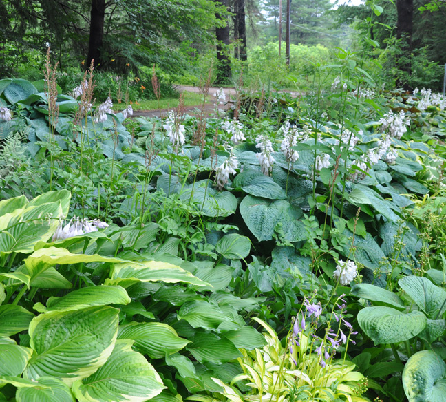"There was no design thoughts whatsoever in choosing the spot," Marnie recounts, "The shade garden was just an unused area of the property down by the road. My sister loved hostas and got me interested in them. So I started collecting. I didn't really think about mood or feeling. I just started planting things that appealed to me."