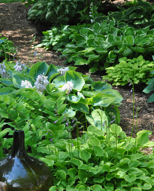 In this instance old bottles are have been scattered through a shade garden.