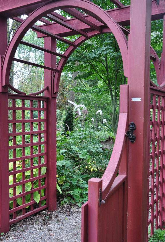 In behind the bench, you can see the tall spires of an Actaea. Lost Horizons Nursery.